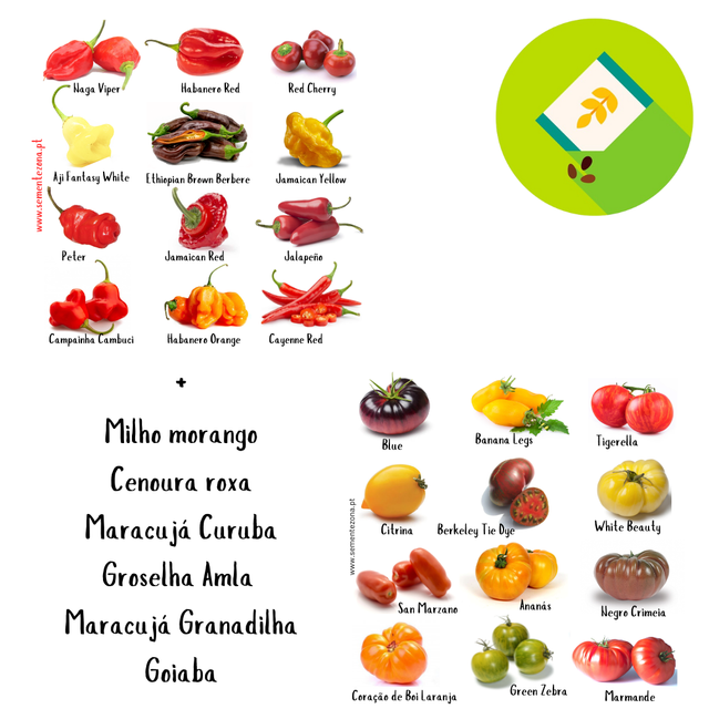 2 kits de sementes + -Milho morango -Cenoura roxa -Maracujá Curuba -Groselha Amla -Maracujá Granadilha -Goiaba (de polpa rosa)