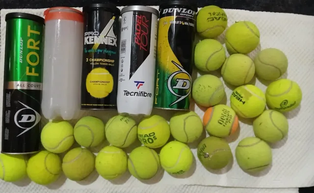 Product detailsLote de 32 pelotas de tenis de diferentes marcas y modelos. Algunas son de la marca Dunlop, Pro Kennex y Head.