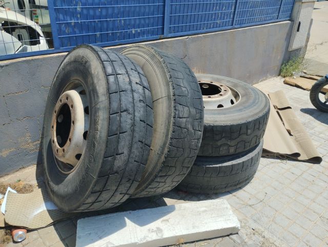 Product detailsSe venden cuatro llantas usadas de camión. Están en buen estado, aunque muestran señales de uso. - Ideales para repuesto o proyectos. - Cuatro neumáticos gastados incluidos. - Recoger en persona.