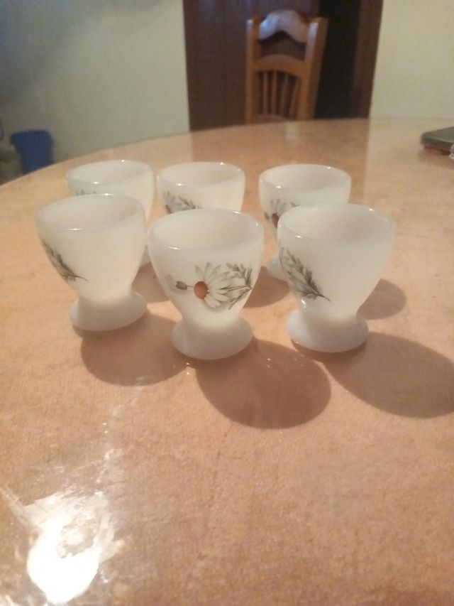 Product detailsSe venden seis hueveras de cerámica Arcopal de los años 70. Son de color blanco opaco con un delicado diseño de margaritas. Ideales para amantes de lo vintage.