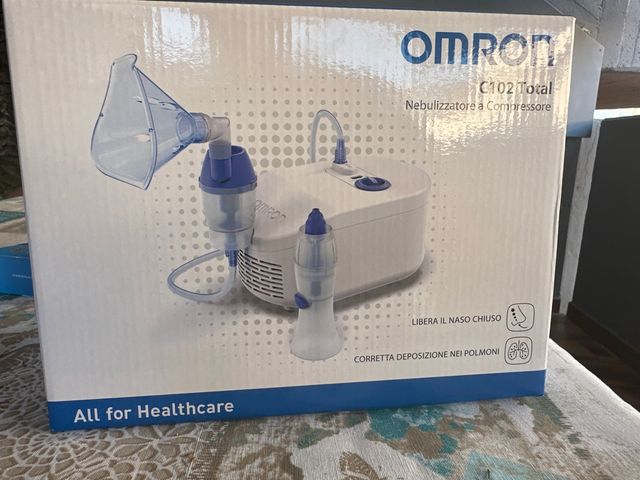 Nebulizzatore a compressore Omron C102 Total. - Libera il naso chiuso. - Corretta deposizione nei polmoni. - All for Healthcare.