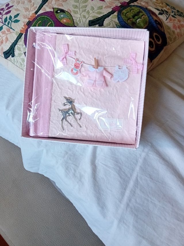 - Álbum na cor rosa claro.