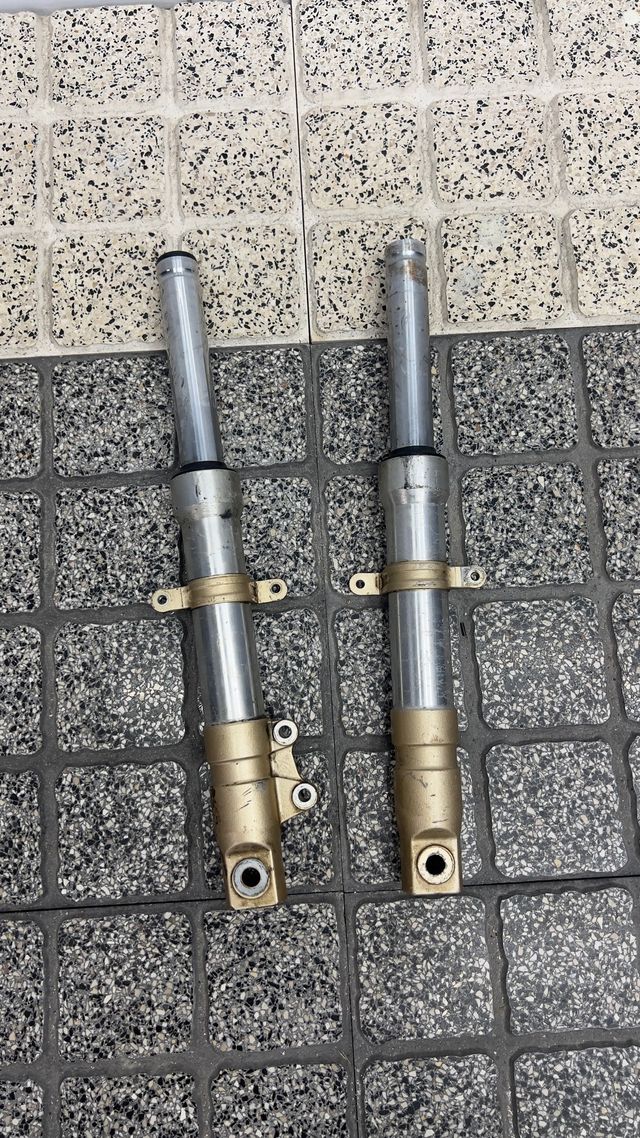 Conjunto de amortecedores dianteiros para Honda X8R. - Peças em metal com acabamento dourado e prateado. Amortecedores usados, em estado razoavel