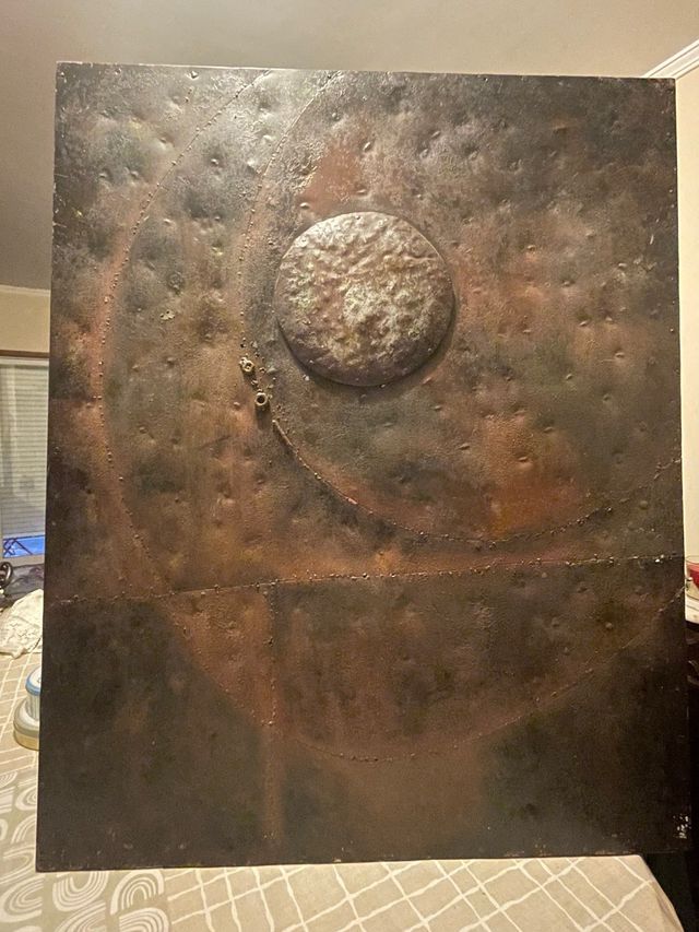 Peça de arte abstrata em aço, com um design moderno e impactante. - Material: Aço - Acabamento texturizado - Design único
