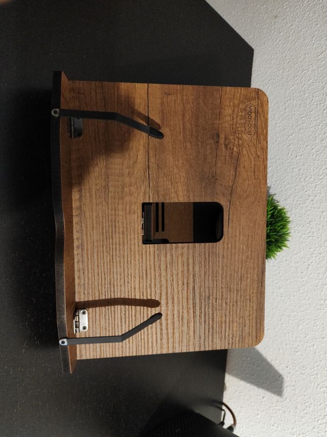 Product detailsAtril de madera con un diseño rústico y elegante, perfecto para exhibir libros o tablets.