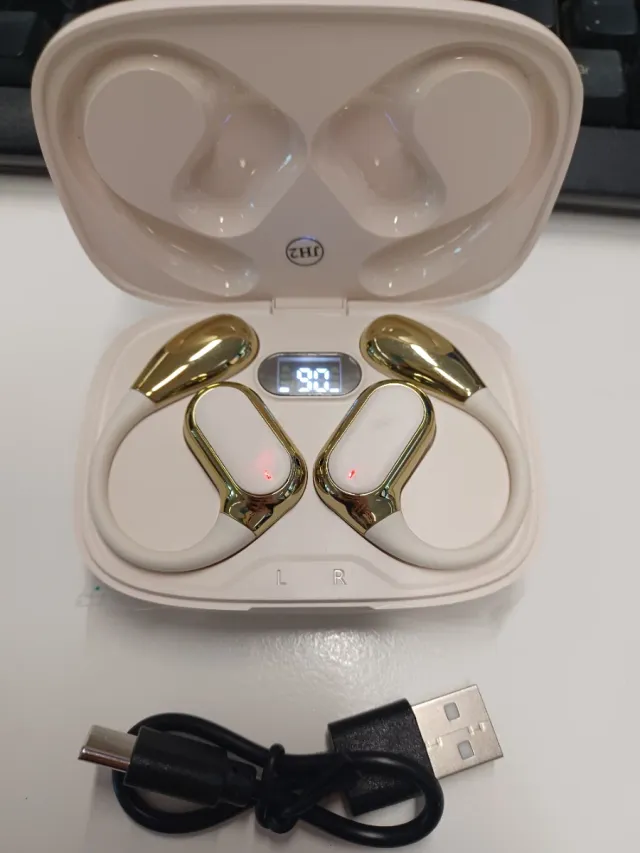 Auriculares inalámbricos dorados y blancos