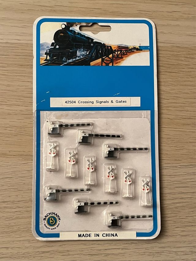 Product detailsSet de señales y barreras para maquetas de trenes u otros tipos. Marca Bachmann. Escala N. Modelo: 42504 Crossing Signals & Gates. Incluye 6 barreras y 6 señales de cruces. Sin abrir. 15€. No negocio los precios. Se puede enviar. Jouef. Marklin. Fleischmann. Kibri. Kato. Picolo. Lima. Heljan. Bachmann. Electrotren. Mabar. Roco. Trix. Estació. Pola Ferrocarril. SNCF. Minitrix. DB. Modelismo. Vagón. Ferrocarril Máquina. Railroad. Estación. Maqueta. Renfe. Adif. por la compra de 2 productos (anuncios) de mi perfil, iguales o superiores a 45€, 5€ de descuento.