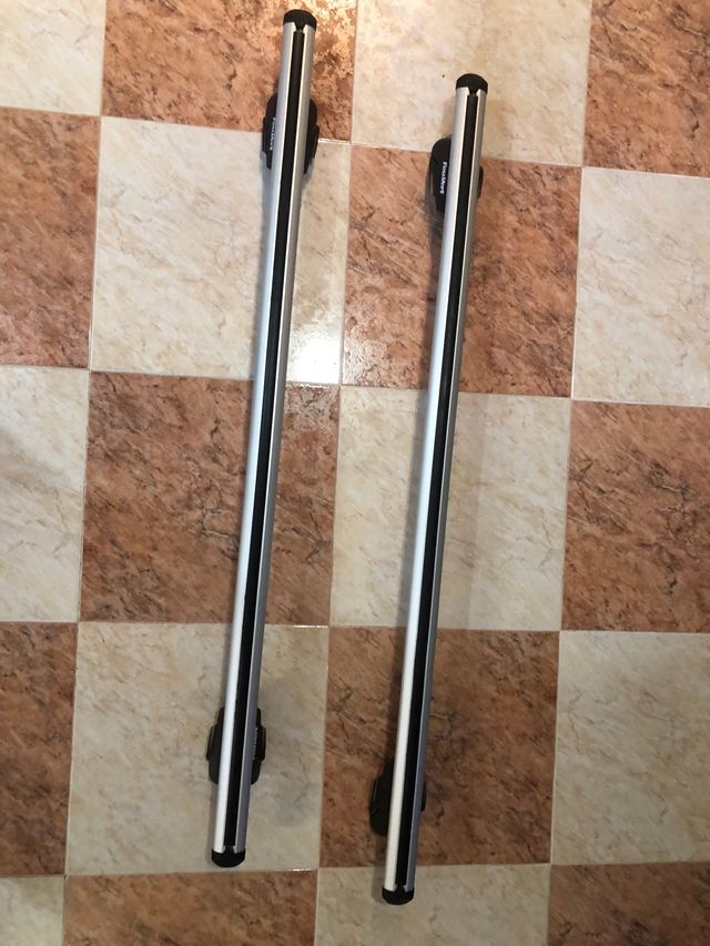 Juego de barras de techo para coche. Son de aluminio y fáciles de instalar. - Material: Aluminio - Color: Plateado y negro - Hasta 75kg -Marca Feu vert