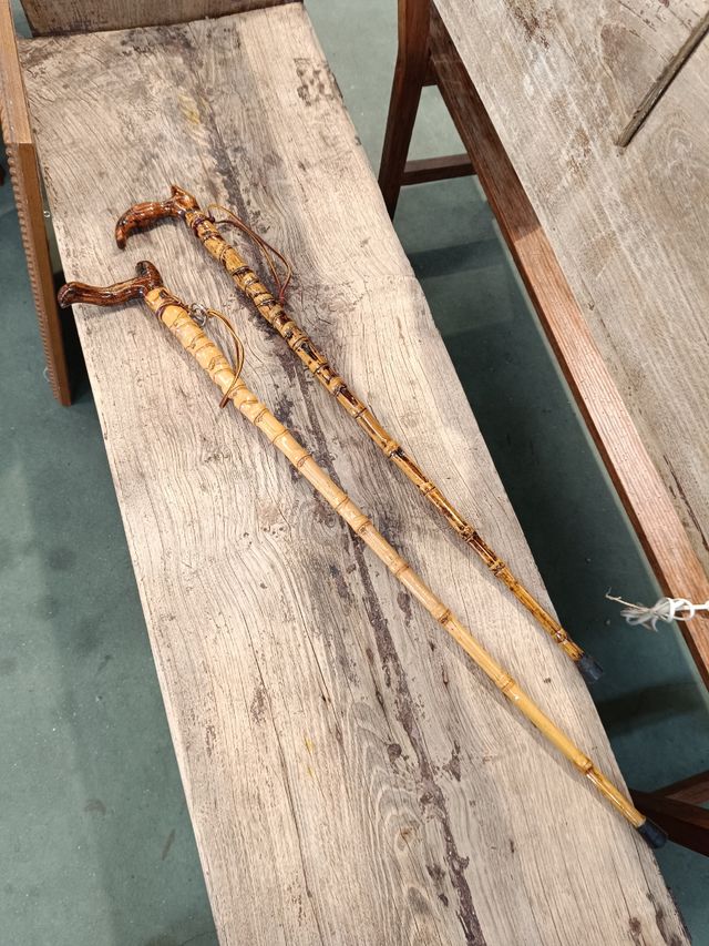 Product detailsBastones antiguos de bambú. PRECIO POR UNIDAD 40€. Medida del de la izquierda 94cm largo. El de la derecha 85cm largo. Estamos en Lugar A Telva 36A. Cambre. De Martes a Viernes de 10:30 a 13:30 y de 16:00 a 20:00. Sábados de 10:00 a 14:00.