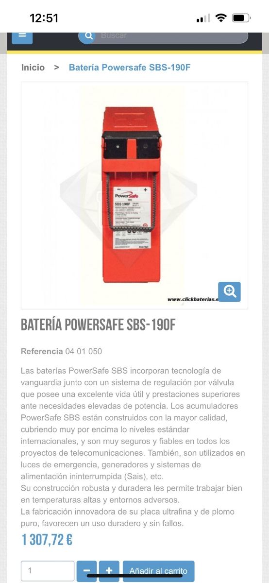 Product detailsBatería nueva AGM Powersafe SBS 190F.