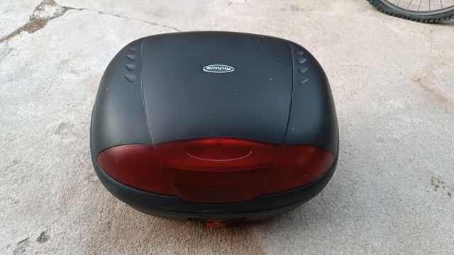Product detailsBaúl de gran tamaño para moto, de color negro. Cuenta con un diseño aerodinámico y reflectantes rojos.