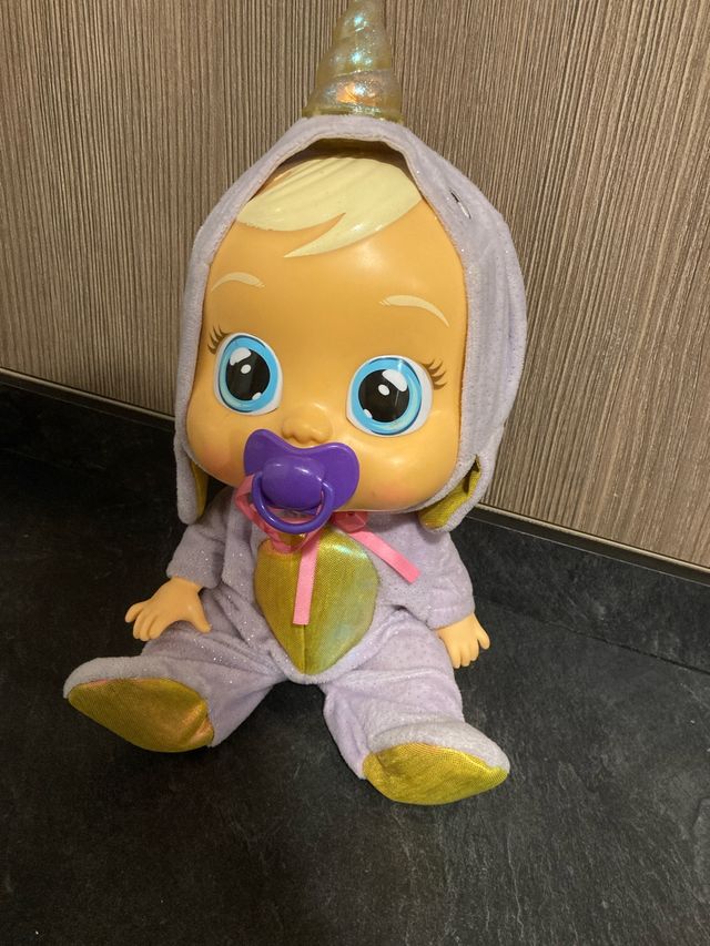 Muñeca Bebé Llorón narval. Viene con un chupete morado y la ropita. El cuerno tiene luz. Está nuevo porque se ha usado muy poco