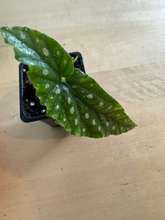 Planta de interior Begonia Maculata con hojas verdes y manchas blancas. - Hojas con patrón de lunares plateados. - Ideal para coleccionistas de plantas.
