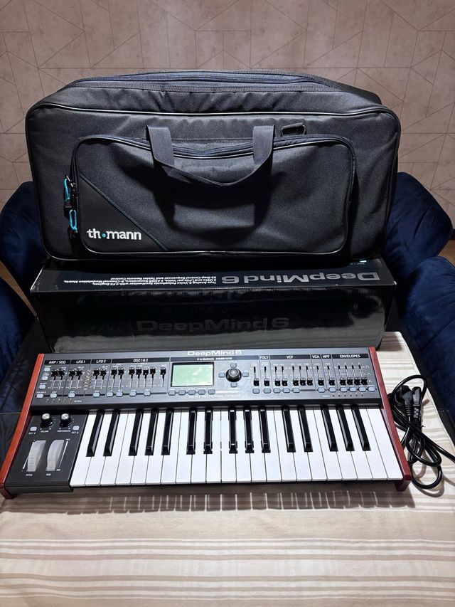 Product detailsSintetizador Behringer DeepMind 6 em perfeito estado com mala de transporte da thomann