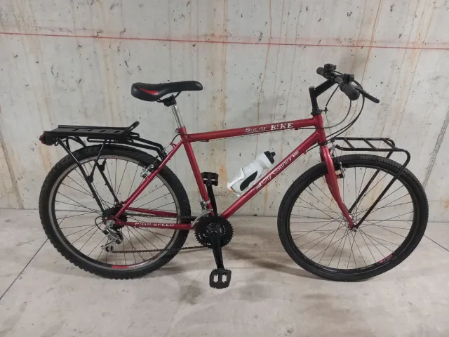 Product detailsBicicletta de montagna City Country di colore rosso, completa di 2 portapacchi robusti,con portata fino a 25 kg. e faretto a led