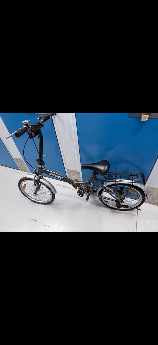 Bicicleta plegable, ideal para desplazamientos urbanos y fácil de guardar. - Cuadro plegable. - Ruedas pequeñas. - Portaequipajes trasero.