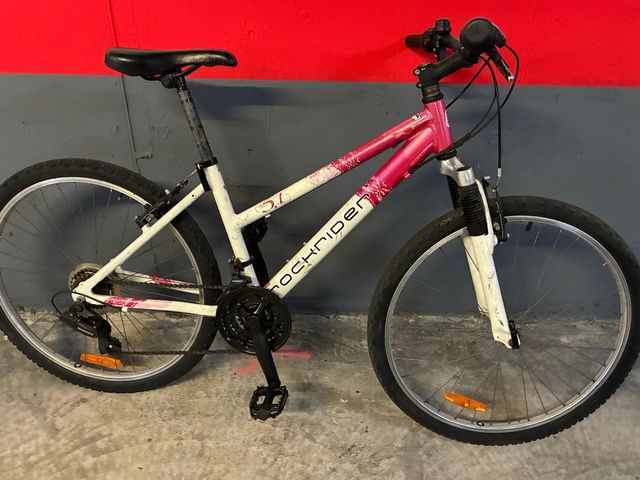 Bicicleta de montaña Rockrider con ruedas de 26 pulgadas. - Cuadro de aluminio. - Suspensión delantera. - Frenos de disco. - Cambio Shimano.