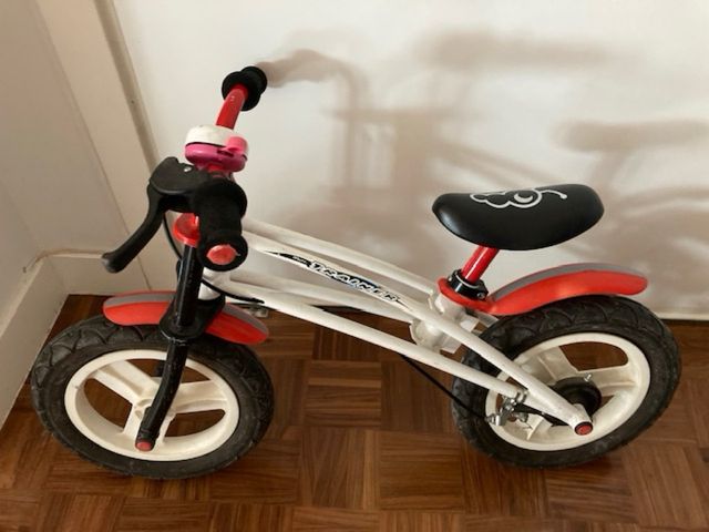 Product detailsPreciosa bicicleta sin pedales, ideal para niños de 3 a 5 años. Es blanca y roja, con un diseño moderno y ligero.