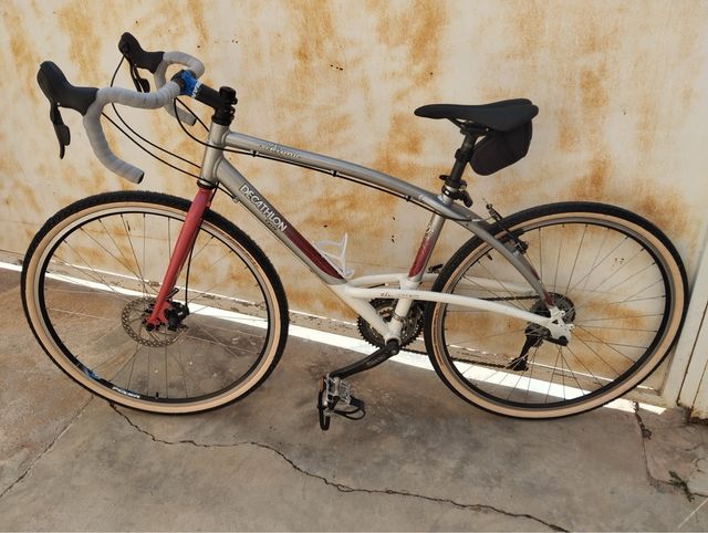 Product detailsTriban urban pasada a Gravel manillar completo manetas con cambio 3x7 neumaticos 700x38 Vittoria gravel dry, talla M ideal para probarse en este mundillo, es una bici muy muy polivalente, por su geometria ideal para mujer, no hago envios ni bajo el precio.
