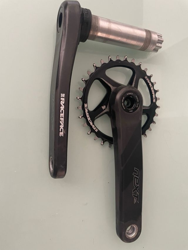 Bielas en muy buen estado, plato de 32 dientes, 175 mm, provienen de una Spark de 2023, muy poco uso. Ligeras y de carbono, su PVP es 380 vendo en 190