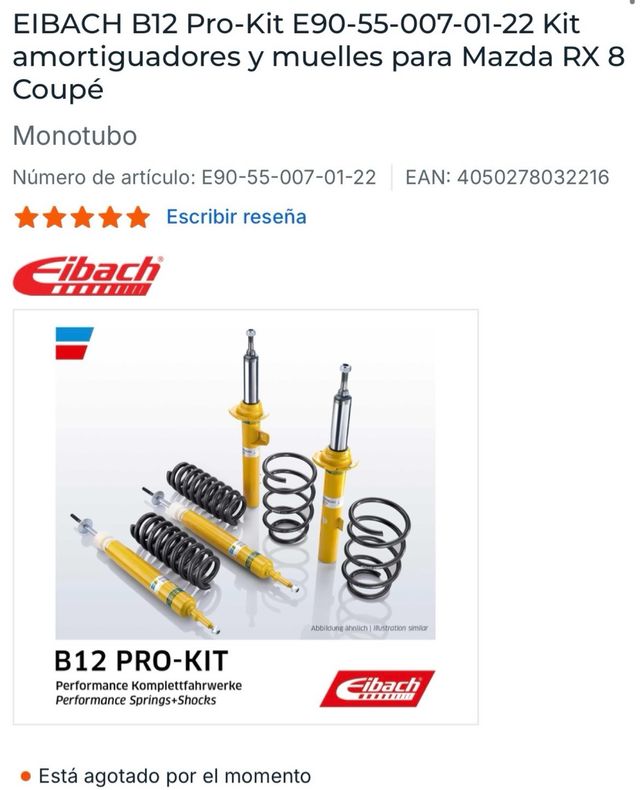 Kit de suspensión Bilstein B12 Eibach Pro Kit para Mazda RX8. El kit incluye amortiguadores y muelles. Nuevo a estrenar, nunca montado. Se hacen envíos