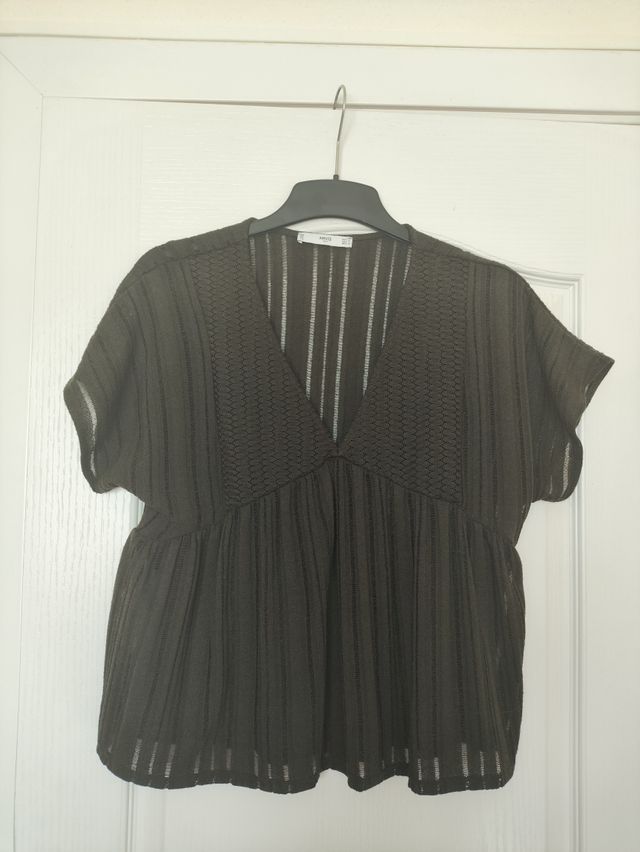 Blusa Romántica Mango Talla M Verde Oliva