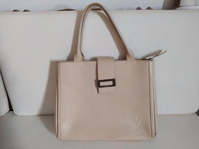 BOLSO "VICOSTA" color nude ,con tres departamentos en el interior, uno con cremallera