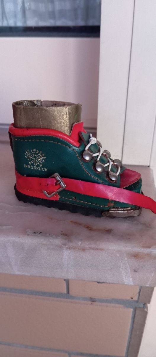 Product detailsBota de esqui vintage de Innsbruck, uma peça única para colecionadores! - Pequena e charmosa, ideal para decoração. - Feita em couro sintético, com detalhes em vermelho e verde. - Apresenta sinais de uso, adicionando charme ao seu visual retrô. - Perfeita para amantes de artigos vintage e lembranças de viagens.