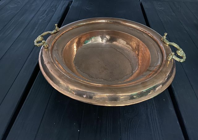 Product detailsBraseira de cobre com pegas em bronze.Muito estimada e em excelente estado.Antiga,sem qualquer uso e moças.Dimensões:exterior 48 cm;interior 31 cm.Qualquer questão,não hesite em contatar e estarei aqui para o ajudar.Pagamento de preferência em dinheiro,antes da entrega.Entregas em mão em Évora ou caso seja para fora, a cargo do comprador.