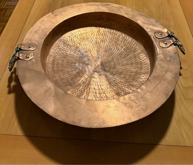 Braseira em cobre com acabamento martelado. Peça decorativa em excelente estado. - Material: Cobre - Design: Martelado - Cor: Cobre
