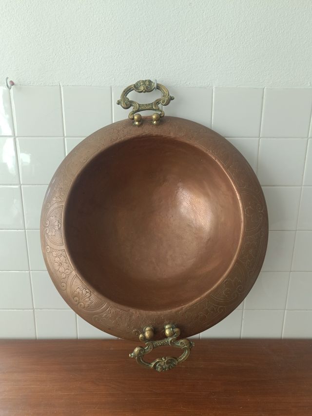 Braseira muito antiga, com cerca de 70 anos,em cobre de Borba como se pode ver a gravação nas pegas em bronze Diâmetro 50 cm