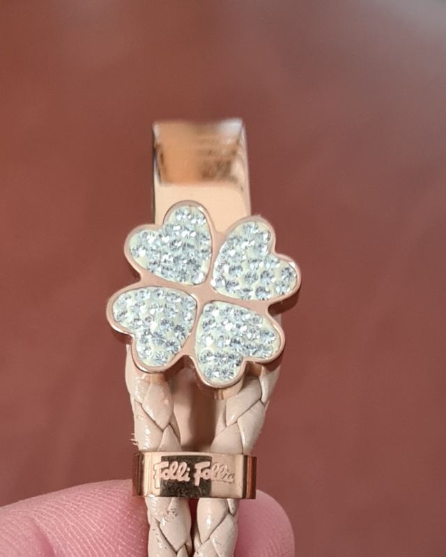 Preciosa pulsera brazalete marca Follie Follie. Material de cuero trenzado y acero .Colección Flowerball.