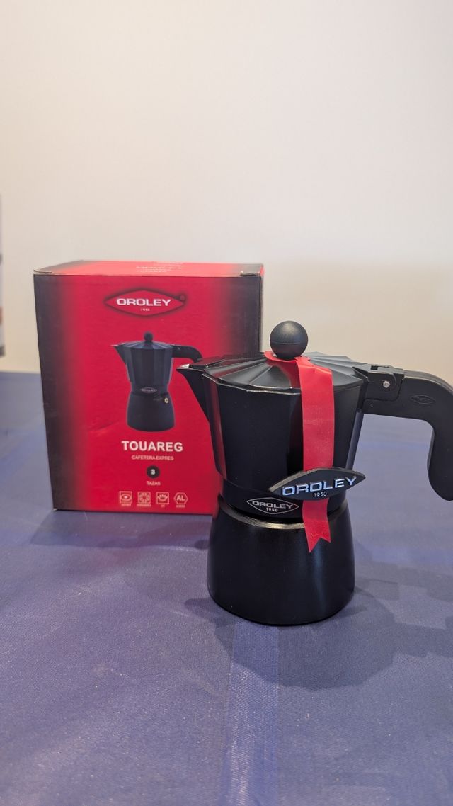 Product detailsCafetera italiana Oroley Touareg de aluminio, ideal para preparar 3 tazas de café express. A estrenar con embalaje original