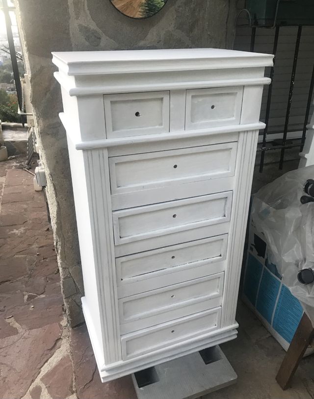 Product detailsCajonero de madera maciza, restaurada pintado en blanco. 7 cajones.