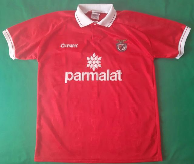 Product detailsCamisola SL Benfica Olympic Época 95/96, publicidade Parmalat. Tamanho XL, a camisola está excelente, cores vivas, a única coisa a apontar são dois pequenos borbotos que se podem ver nas fotos.