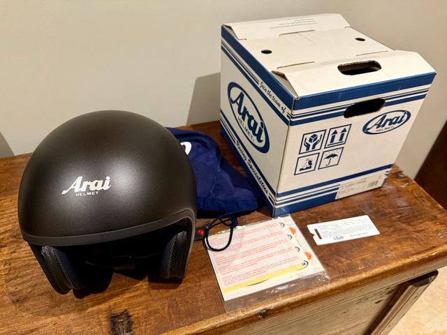 Capacete Arai Freeway Classic, tamanho M, em excelente estado, usado apenas duas vezes. Cor preta mate. - Inclui saco de proteção. - Caixa original.