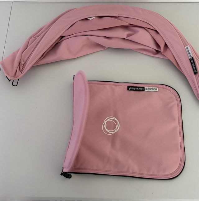 Product detailsCapota y cortavientos en color rosa para Bugaboo Camaleón 3. El tejido es suave y protege del sol y el viento.