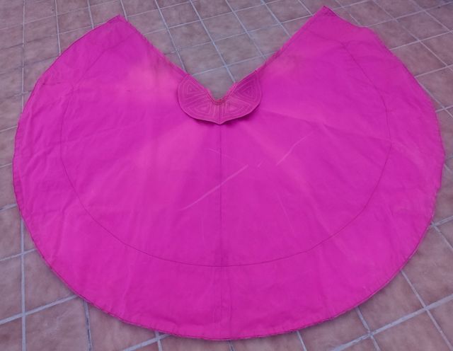 Product detailsCapote de torero, ideal para entrenamiento o coleccionistas. Se encuentra en buen estado, aunque presenta algunas marcas de uso. Medidas 1.14. Sastreria Maria José.Nunca lo he lavado se el polvo en la parte morada pero se puede entregar limpio.