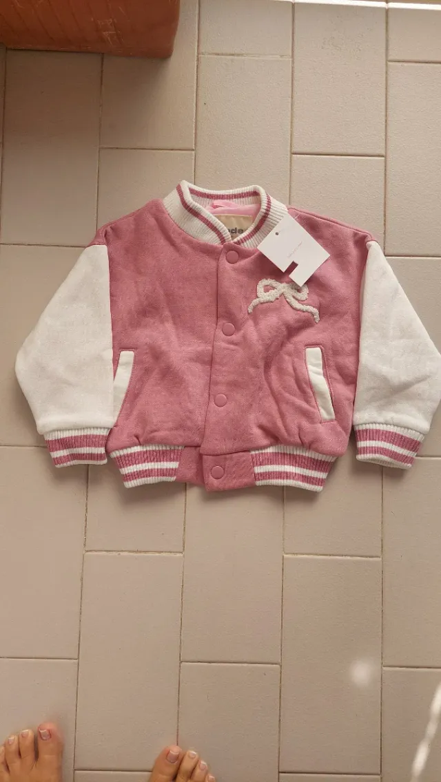 Product detailsCasaco estilo bomber para menina, tamanho 12/18 meses.