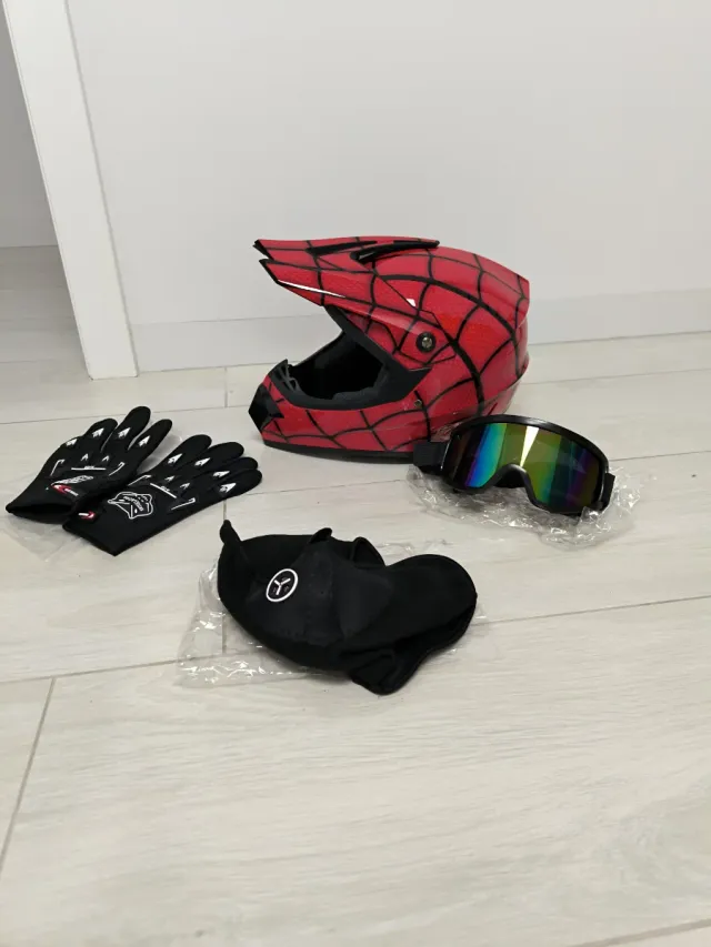 Cuenta con estampado estilo Spiderman / Spider, con acabado que simula fibra de carbono, muy vistoso.