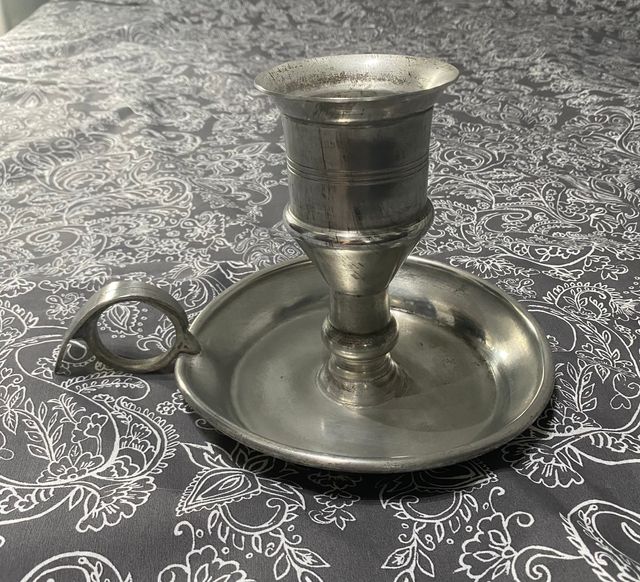Product detailsCastiçal Vela grossa Puro Estanho. Antigo, conservado, muito estimado e em excelente estado.