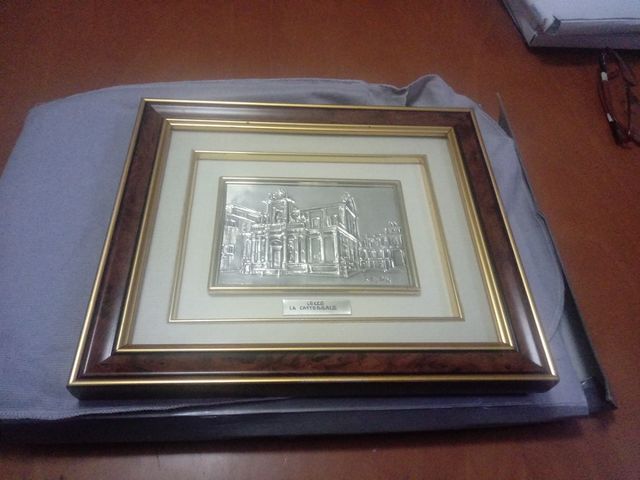 Catedral Cattedrale de Lecce (Italia) hecha a mano en plata 92,5% en tamaño 9x13 y con marco de 23x27