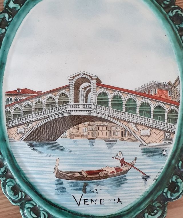 Ceramic wall decoration, hand painted, vintage. Missing letters in the word Venezia, appart from that in very good condition.