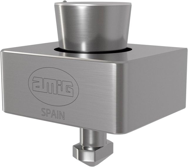 Product detailsCerradura de seguridad Amig para puertas enrollables. Fabricada en metal con acabado cepillado.