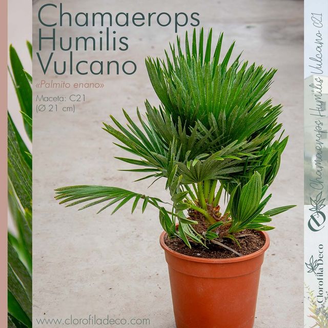 Product detailsChamaerops humilis 'Vulcano', palmera enana de lento crecimiento, ideal para macetas o jardines. De porte compacto, hojas en forma de abanico y de color verde plateado. Es una planta extremadamente duradera y resistente a la sequía, perfecta para exteriores soleados o semisombra. Muy fácil de cuidar y excelente opción para climas mediterráneos.