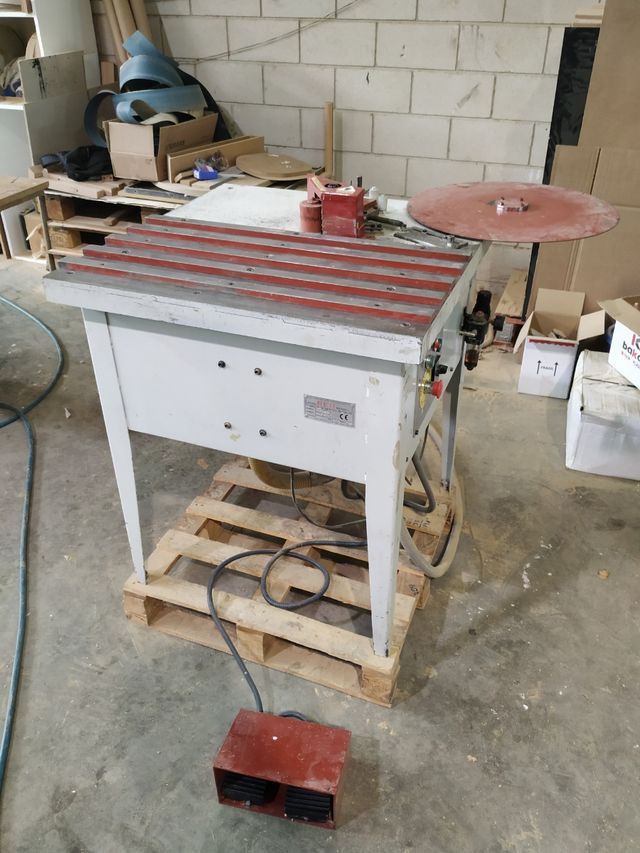 Chapadora de cantos curvos marca Bercar. Chapadora por aire caliente, con pedal de avance automático y cizalla de corte. Para canto preencolado. trifásica.