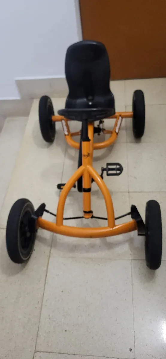 Coche de pedales de la marca Berg, ideal para que los más pequeños disfruten al aire libre. - Color naranja. - Asiento negro. - Ruedas negras.