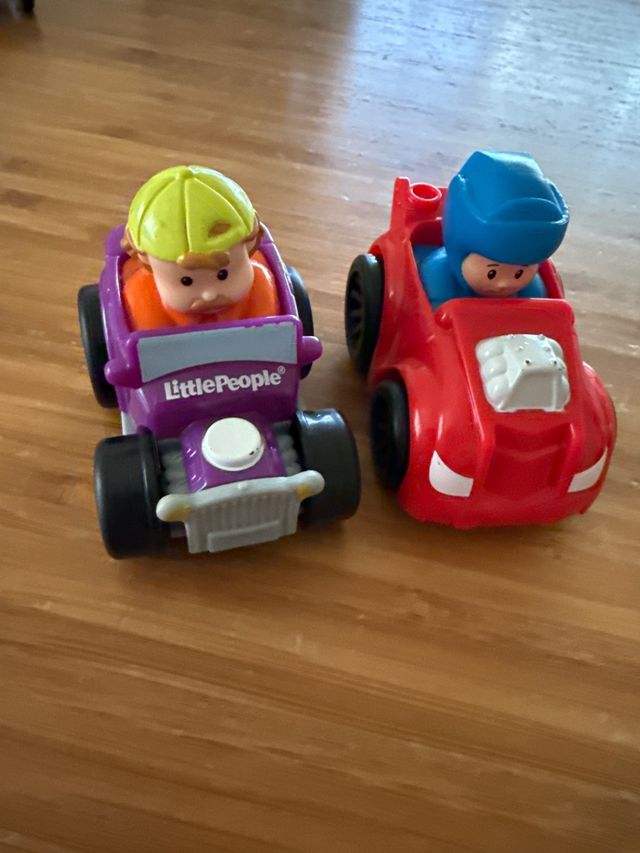 Product detailsDos cochecitos de la marca Little People, perfectos para los más pequeños. Uno es morado y el otro rojo.