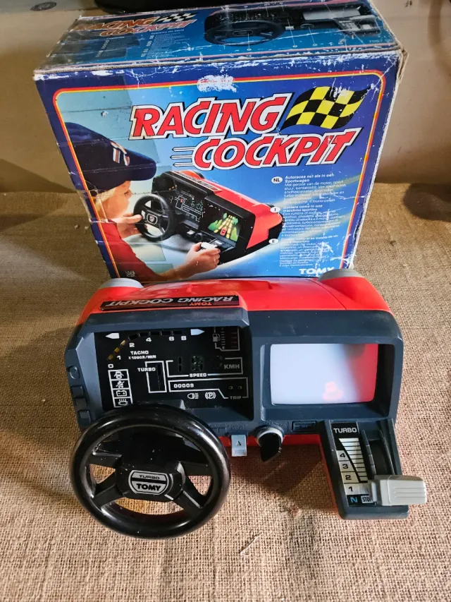 Cockpit de corrida Tomy Racing em bom estado. - Volante com botões. - Alavanca de câmbio. - Painel com indicadores de velocidade e rotação.