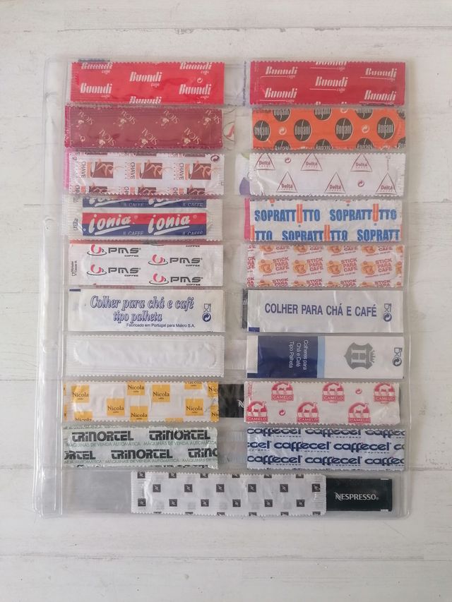Coleção de 38 palhetas de café muito bem estimada, com micas de plástico incluídas. Vários países, sobretudo Portugal. Por favor contacte-me para mais informações. Obrigado!